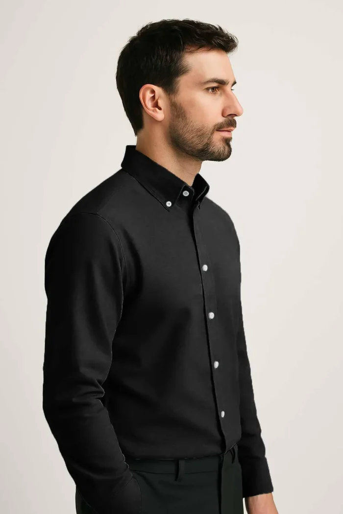 100% Cotton Black Textured Oxford Button-Down Shirt